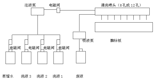 洗板機(jī)一般由清洗液瓶、電磁閥、泵、分配針(分配頭中細(xì)金屬管)構(gòu)成分配路徑。