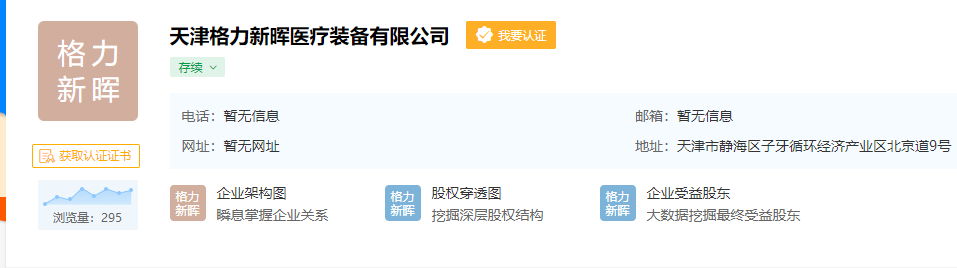 在新冠肺炎疫情的影響下,其他行業(yè)跨界醫(yī)療領域生產醫(yī)療器械這已經不是什么新鮮事兒,就比如很多車企在疫情期間改成生產口罩、呼吸機等設備。而10月26日,天津格力新暉醫(yī)療裝備有限公司成立,法定代表人為董明珠,注冊資本5000萬人民幣。該公司由珠海格力電器股份有限公司持股。