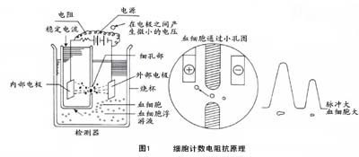 稀釋血液細(xì)胞,防止血液細(xì)胞聚集和粘連;保持穩(wěn)定的pH、ρ、OS等理化指標(biāo):根據(jù)血液細(xì)胞分析儀設(shè)計(jì)理念不同,稀釋液的理化指標(biāo)有很大的差異,不同的血液分析儀醫(yī)療器械在用電阻法原理(如圖)測(cè)量樣本時(shí),設(shè)定的脈沖信號(hào)閾值不盡相同(稀釋液區(qū)分為高滲、等滲、低滲),因此同一份樣本在不同血液分析儀上直方圖fl不同。以RBC直方圖為例,靈敏度高的血液分析儀配以理化指標(biāo)穩(wěn)定且范圍精確的稀釋液,可以將橫坐標(biāo)控制在60-150fl,反之,橫坐標(biāo)將會(huì)延伸到30-200fl甚至更寬,直方圖會(huì)發(fā)生左移或者右移。